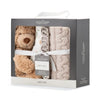 This Little Linen Company Boxed Gift Set, combines key items to have on hand for any newborn bub. This set features a soft and functional plush blanket, a cuddly plush toy, 6 knitted terry washers, and an incredibly useful muslin wrap.