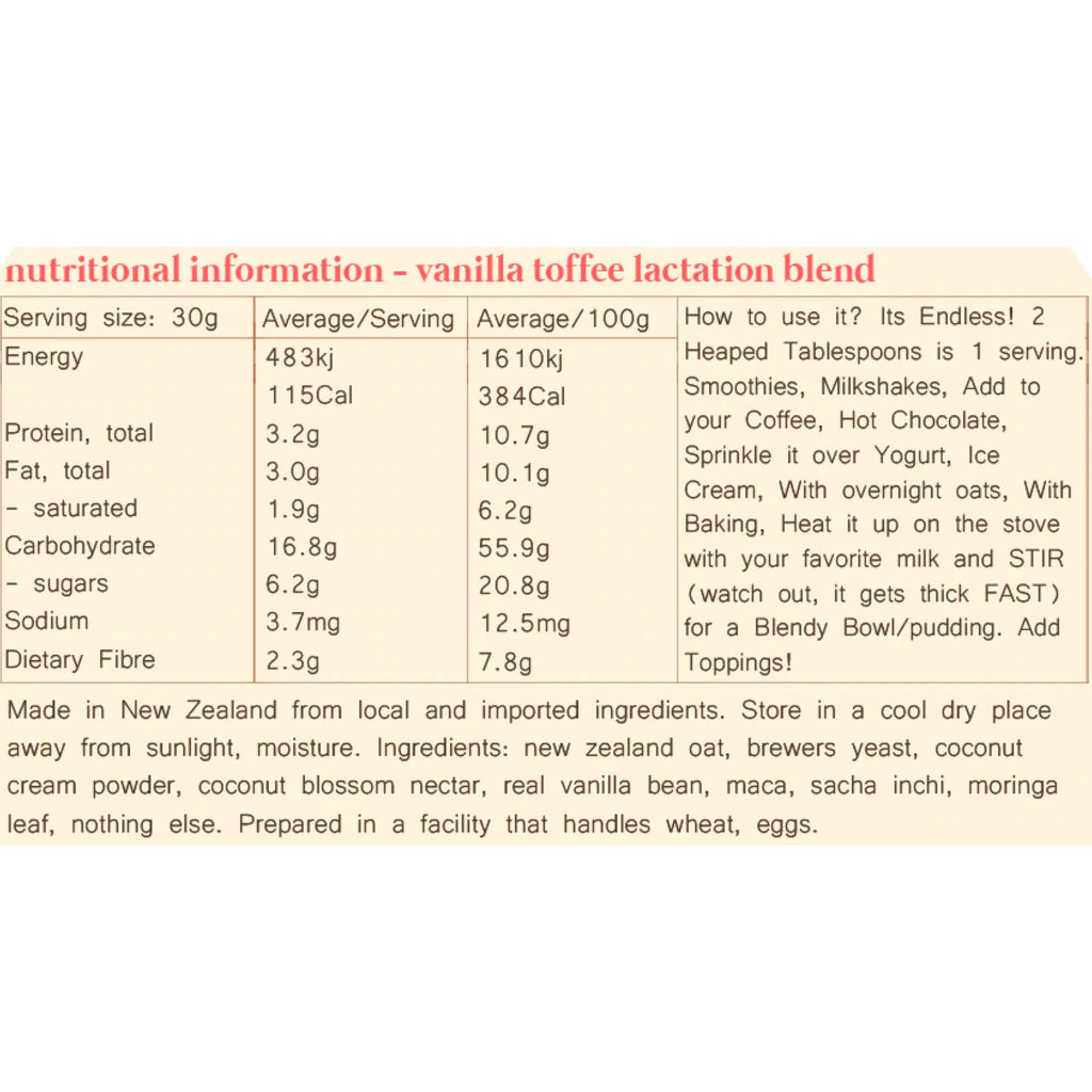 Our delicious Vanilla Toffee blend with real vanilla bean and organic coconut sugar is perfect used in milkshakes, smoothies for a quick fix, shaken with hot milk as a latte, or a hot blendy bowl with your favorite toppings, baking and much more.