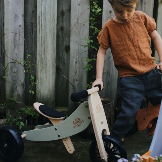 The Kinderfeets Tiny Tot PLUS is a larger version of the popular Tiny Tot, our 2-in-1 bike that easily converts from a tricycle to a 2-wheel balance bike. Designed for ages 18 months to 4 years, Kinderfeets Tiny Tot PLUS can help tots start young with a tricycle and transition to a Kinderfeets Classic size balance. Seat height: 10" to 13" (25 to 34 cm) Handmade with wood from fast-growing birch trees or bamboo-a replenishable resource. Suitable for children age 18 months and up Weight limit 55 lbs. (25 kg)