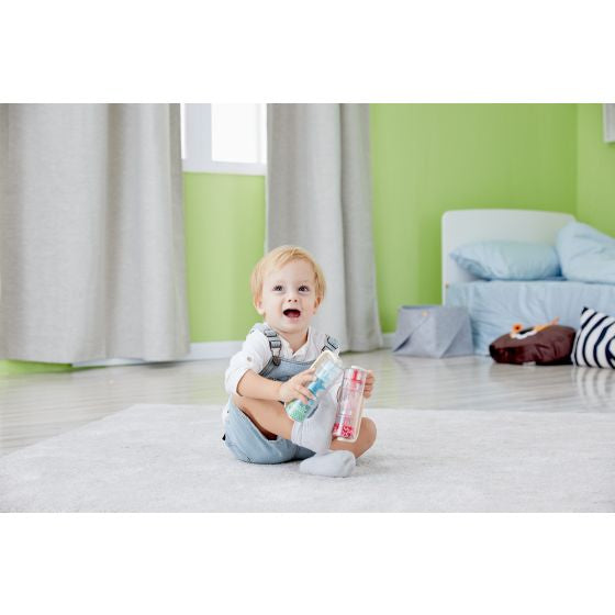 The dynamic movement and soothing sound will be an exciting sensory experience for your little one. An easy-to-grip shape also makes it easy for little hands to grasp, shake, and spin the toy independently.
