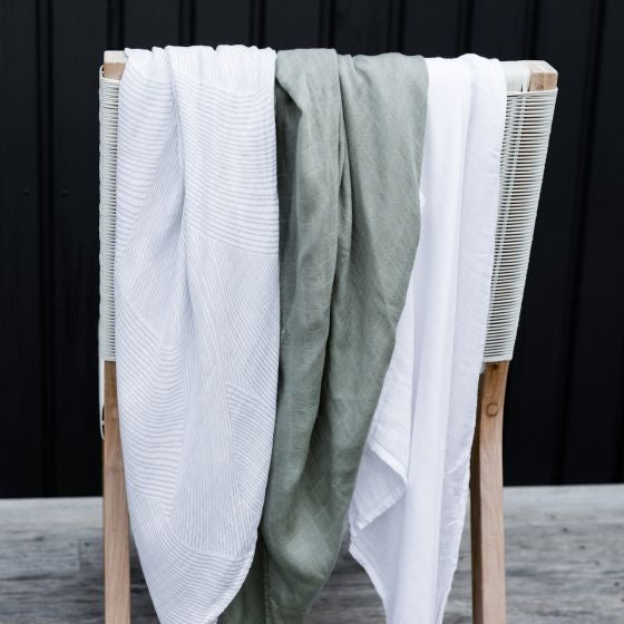 Muslin swaddling blankets are a versatile nursery favourite with oodles of uses, including a lightweight blanket, towel, burp cloth and change mat just to name a few.