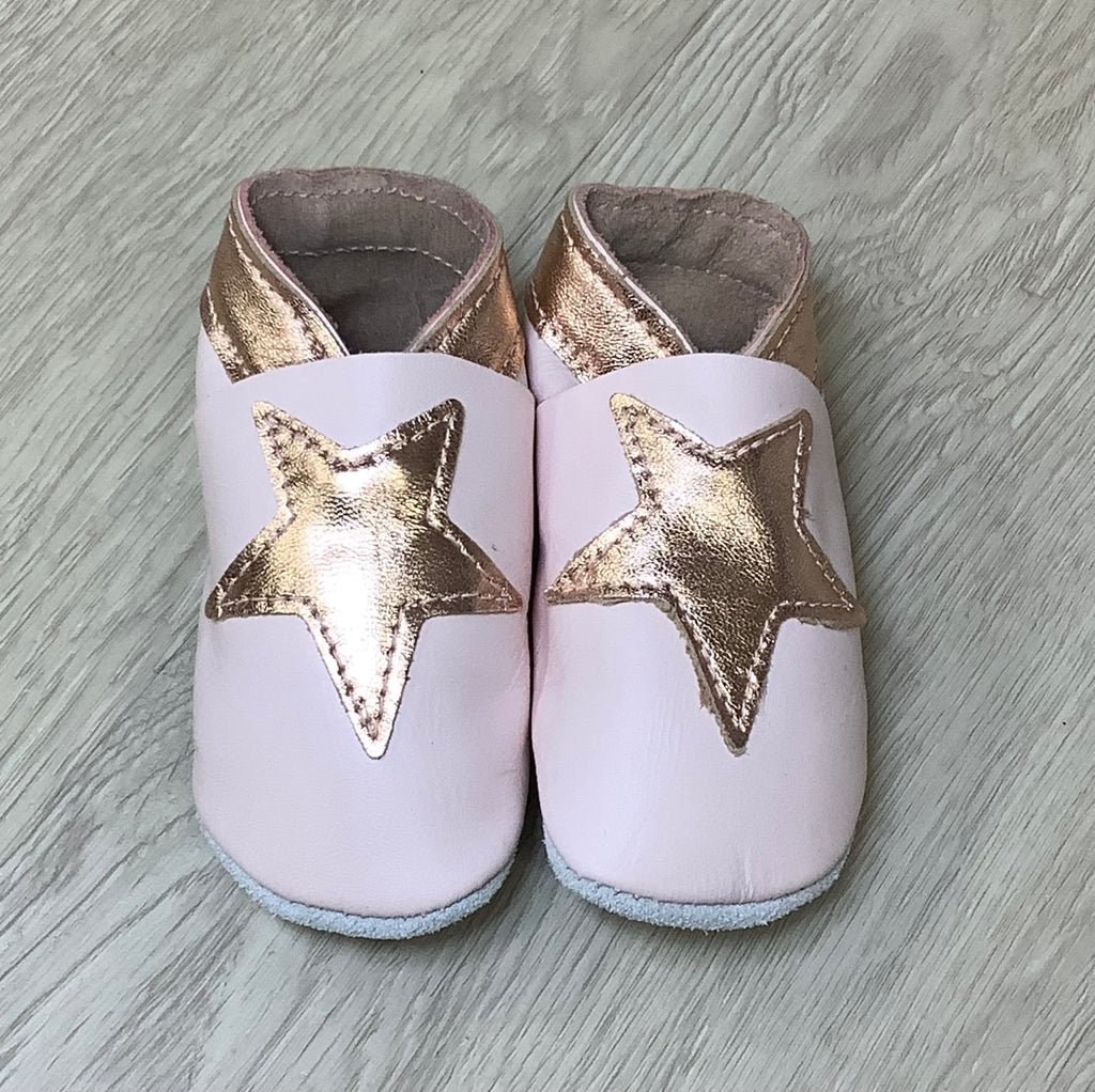 Pitter Patter Soft Leather Shoes - Stars - Pink, Rose Gold Small