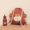 The floppy ears provide a nice playful detail. Use the 2 handy drawstrings to easily open and close the gym bag. There are a name tag and a small pocket inside; the latter to keep some small items, money or a membership card.